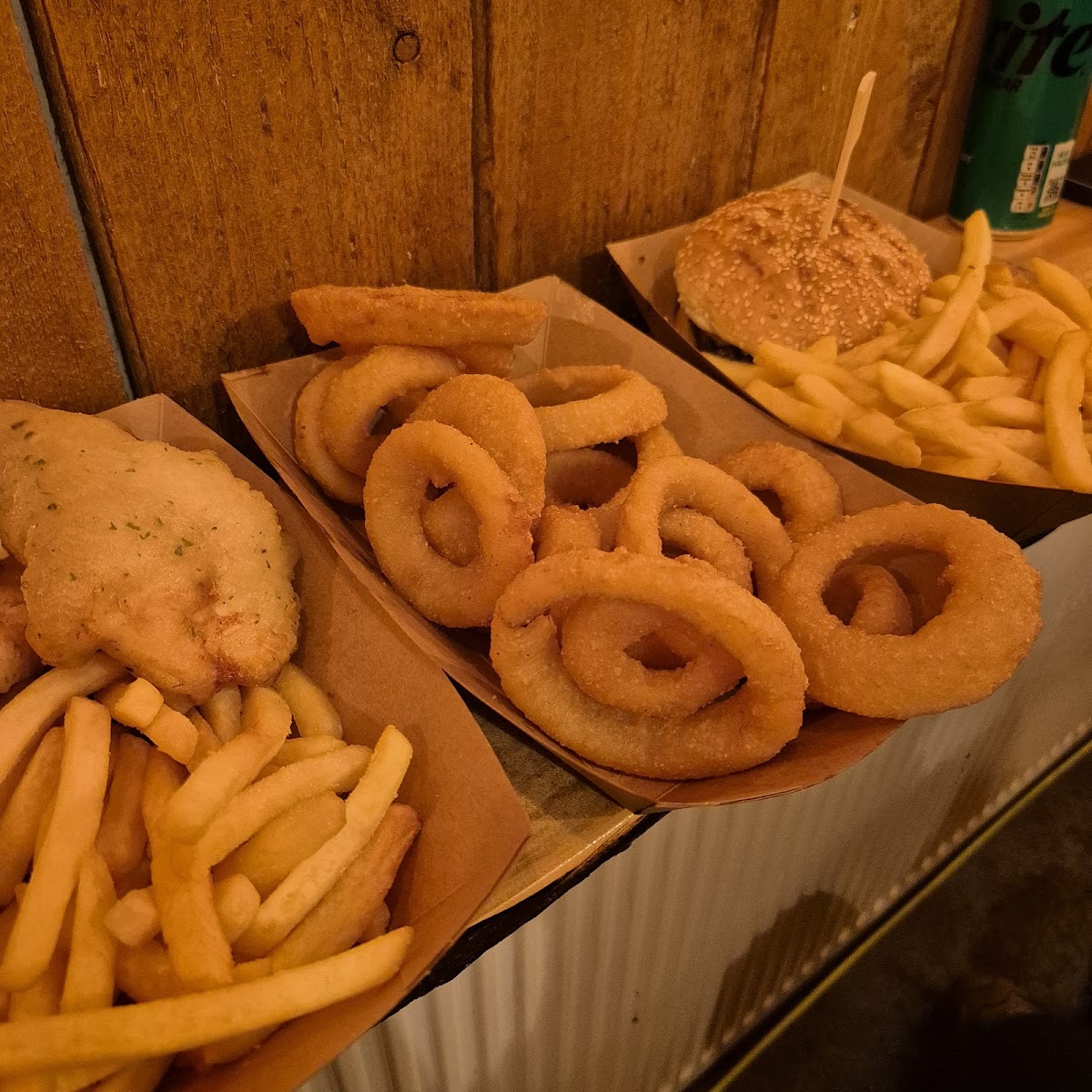 The heart of the experience here is the food — straightforward but satisfying. The fish and chips carry a delicate crunch, the batter light enough to let the freshness of the cod shine through, a balance that resonates with the island’s coastal simplicity. Alongside it, generous onion rings and hearty Icelandic beef burgers round out the menu, each bite echoing a comforting, familiar rhythm. The coffee corner offers warm counterpoints, from steaming lattes to rich hot chocolates, inviting visitors to stay a little longer and soak in the easygoing vibe.